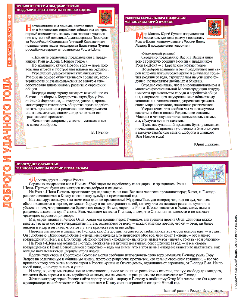 [<< Возрождение]        ЛЕХАИМ НОЯБРЬ 2003 ХЕШВАН 5764 – 11(139)