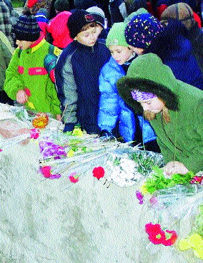 В память о погибших дети зажгли поминальные свечи,  читали стихи. «Люди мира, будьте зорче втрое», – пел ученик 7­го класса еврейской школы Саша Зарахович. Стоящие у шурфа старики подхватили его песню; образовался сводный хор, призыв которого «Берегите мир!» набатом бил в сердца людей.
