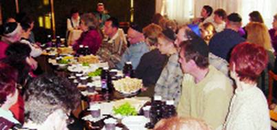 *      В этом году община приложила все усилия для того, чтобы каждый еврей смог посетить пасхальный сейдер. Праздничные вечера прошли в донецких кафе «Дока-пицца» и «Сайгон», а также в благотворительной столовой при синагоге и Хеседе. Организацией сейдеров занимался главный раввин Донецка Пинхас Вышецкий. Еврейская молодежь отмечала праздник в кафе «Макси», собравшем более восьмидесяти человек. Вел сейдер председатель религиозной общины иудеев Донецка Иеуда Келерман.
