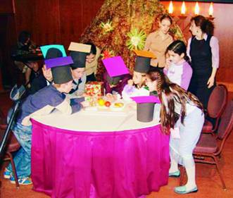 Затем началась интеллектуальная игра – «суперпоединок» между учителями и учениками воскресных школ. Надев бумажные цилиндры, капитаны команд словно заправские «знатоки» из клуба «Что? Где? Когда?» отвечали на сложнейшие вопросы по еврейской истории и традиции. Поединок оказался весьма напряженным. В итоге победили ученики, разгадавшие все хитрые вопросы, составленные учителями, причем победили с большим перевесом!