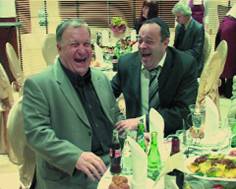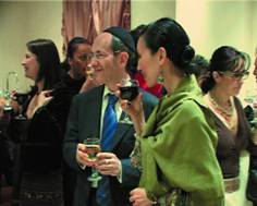 Особенно порадовало гостей пожелание раввина Лазара, прозвучавшее следом. Раввин пожаловался: «"Мы все так много работаем, всегда у нас под рукой мобильные телефоны, с которыми мы не расстаемся ни днем ни ночью, а на главное – близких, родных, семью – у нас почти не остается времени». «Давайте в новом году мы все будем чуть меньше работать и больше находить времени на отдых, на семью, на наших любимых!» – пожелал всем Берл Лазар. «Шана това у-метука! (“Хорошего и сладкого нового года!”)» – раздалось за всеми столами, и за это все весьма охотно выпили. «Раввин попал в самую точку», – обменивались мнениями гости. Мысль раввина развил в своем поздравлении адвокат Михаил Барщевский. «В любой стране священнослужитель любой конфессии – православный, католик, протестант – всегда призывает своих прихожан меньше бездельничать и как можно больше трудиться, и только наш раввин пожелал нам побольше отдыхать. Наверное, поэтому мы так много и работаем», – предположил господин Барщевский. Затем он, направляясь к столику, за которым сидел художественный руководитель журнала «Ералаш» Борис Грачевский, увидел приподнявшегося ему навстречу режиссера Марка Розовского, и под звуки еврейской песни «Чирибим-Чирибом» господа Барщевский и Розовский станцевали, идя навстречу друг другу. За танцем с интересом наблюдал «медицинский» стол – директор Центра эндохирургии и литотрипсии Александр Бронштейн, главный врач московской «скорой помощи» Игорь Элькис и руководитель Центра планирования семьи и репродукции Марк Курцер. «Это самый дорогой нашему сердцу доктор, – сказал мне один из руководителей ФЕОР, указывая на господина Курцера. – У него наши жены рожали, и в этом году будут рожать, тем более после пожелания раввина».