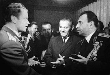 В. А. Шаталов вручает медаль космонавтов начальнику  Качинского летного училища полковнику Малееву. А. Яворский в центре.1970 год.