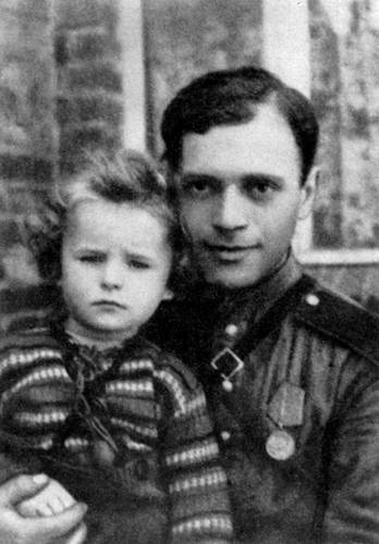 Давид Кауфман (Самойлов) с польской девочкой. Апрель 1945 года