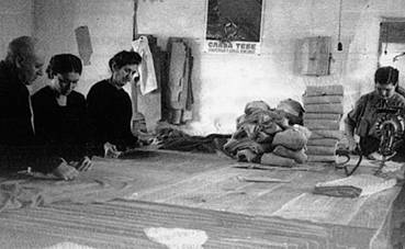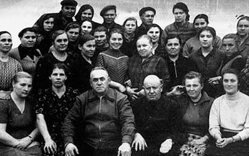 Цех кройки Аламединской трикотажно-ткацкой фабрики. 1959 год / Работники Аламединской фабрики. Конец 1950-х годов