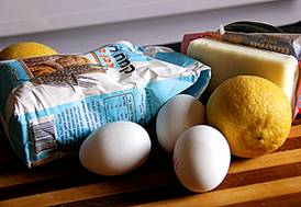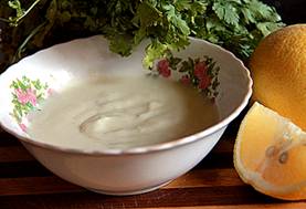 Ингредиенты: 2 столовые ложки муки, 2 столовые ложки оливкового масла, 2 сырых куриных яйца плюс 1 желток, сок половины лимона, соль по вкусу, стакан куриного бульона или воды.