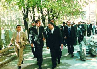 Губернатор В.А. Яковлев с представителями петербургской еврейской общины. На переднем плане слева от губернатора председатель общины М.Д.Грубарг, справа — заместитель председателя Т.А. Сепиашвили.